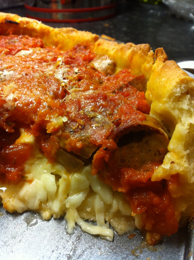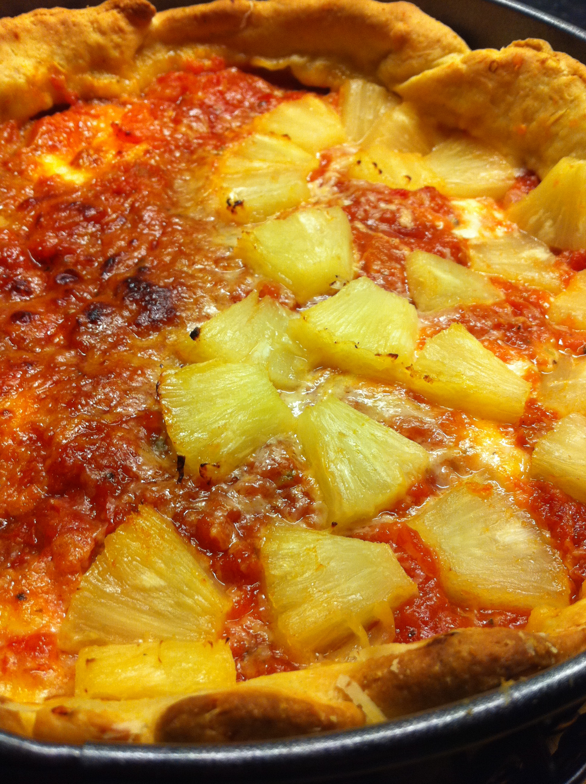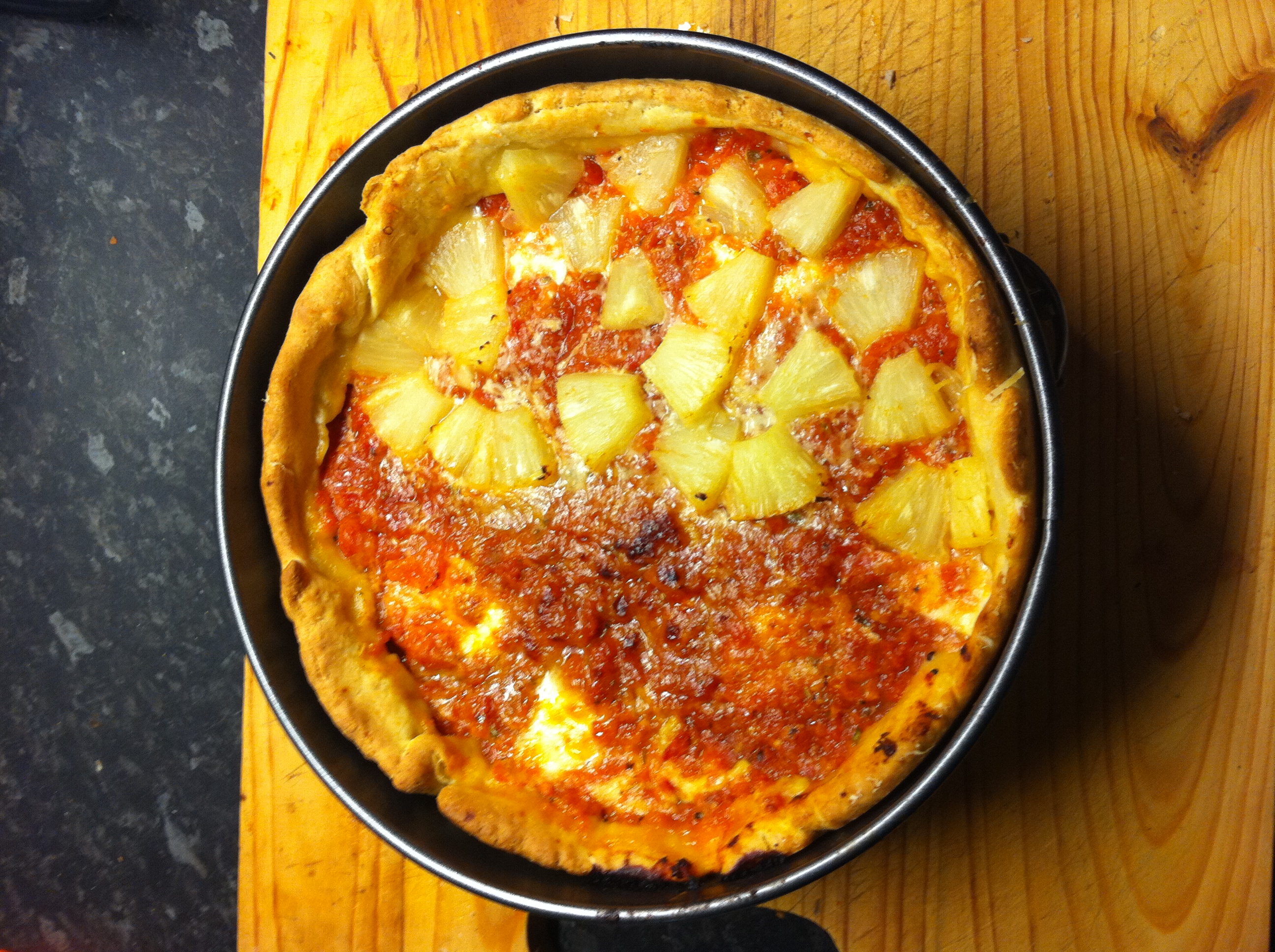 When we were in Florida in October we unwittingly ordered a pizza one night that would go on to become the pizza by which all other pizzas would be judged. It was a Chicago style, deep dish stuffed pizza from Giordano’s; original cheese with added pineapple (don’t ask, it’s Ben’s favourite pizza topping…) and when it arrived we were a little gobsmacked: