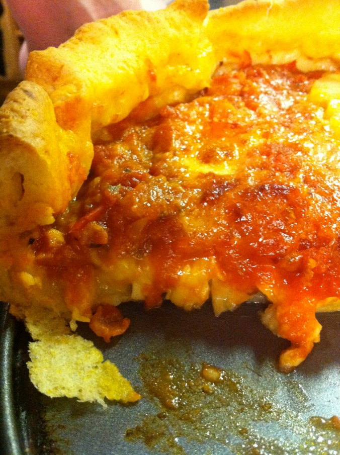 They were incredible. Cheesy, cheesy, cheesy! The crust was perfect – it tasted EXACTLY like the Giordano’s one…dare I say it, better! It was flaky, buttery and rich. Delicious. It cooked perfectly in the amount of time stated on the recipe too even though I was afraid the bottom wouldn”t crisp up, it did! The tomato sauce was probably the best one I’ve ever tasted – grating the onion and cooking it really slowly as per the recipe made it so intense and deep, I’m glad I didn’t buy a sauce like I was originally planning to.