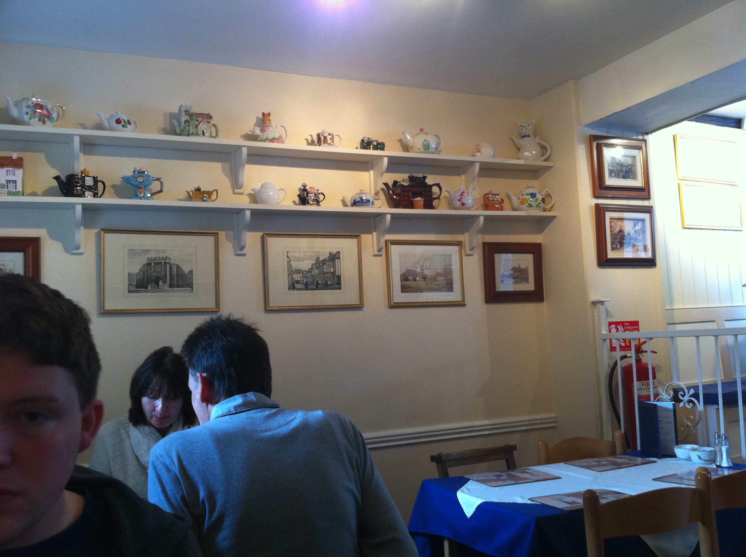 I took some photos of the interior as we waited for our lunch – as I said before I am biased but I think it is so pretty! There is a collection of vintage teapots on shelves all around the tearooms which always get lots of attention and admiring looks from customers.