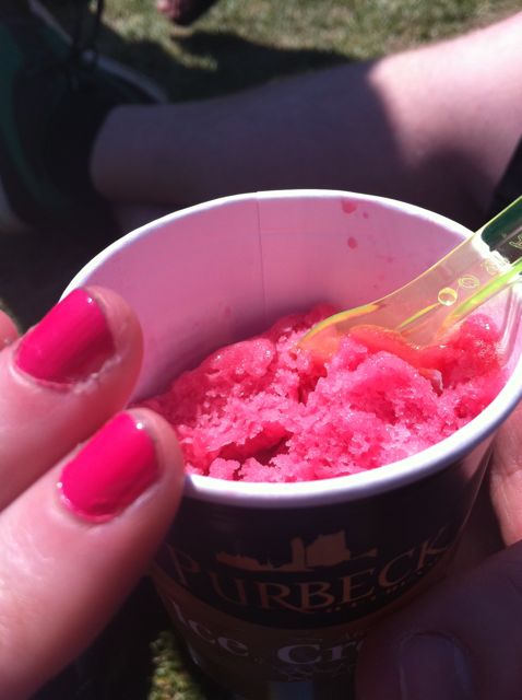 He needed something to soothe his burning face and an ice cold sorbet seemed like it would do the trick. He got a scoop of raspberry and I was very impressed as it matched the shade of my nail varnish perfectly! Which warranted a photo, obviously. Girls, eh!?