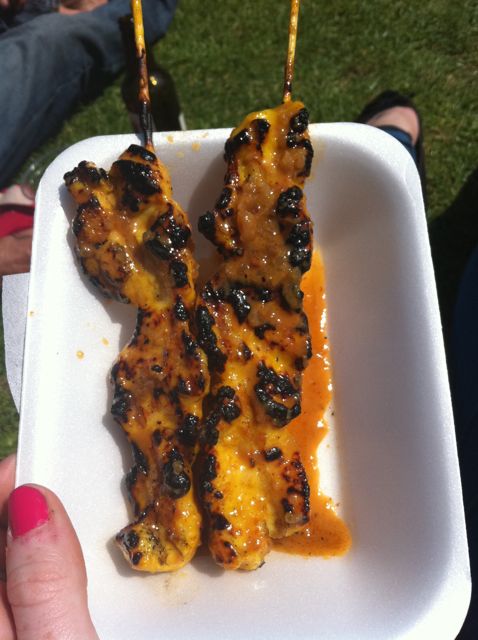I was absolutely stuffed from all the nibbling and lemonade-downing I’d been doing so opted for a lighter choice – satay chicken skewers. Anything that is essentially marinated in peanut butter is a winner in my book so these went down a treat.
