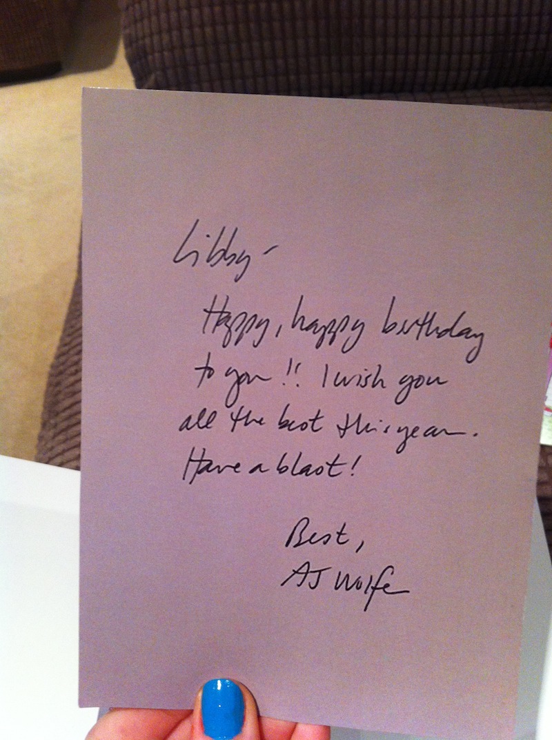 And it was only going to get better!! Envelope 3 was from the totally cool and DOWNRIGHT HILARIOUS McKenzie from Grilled Cheese Social who had written me an adorable little note and told me she loved my blog!! This was almost too much. I had the food-blogger-birthday-messages sweats.