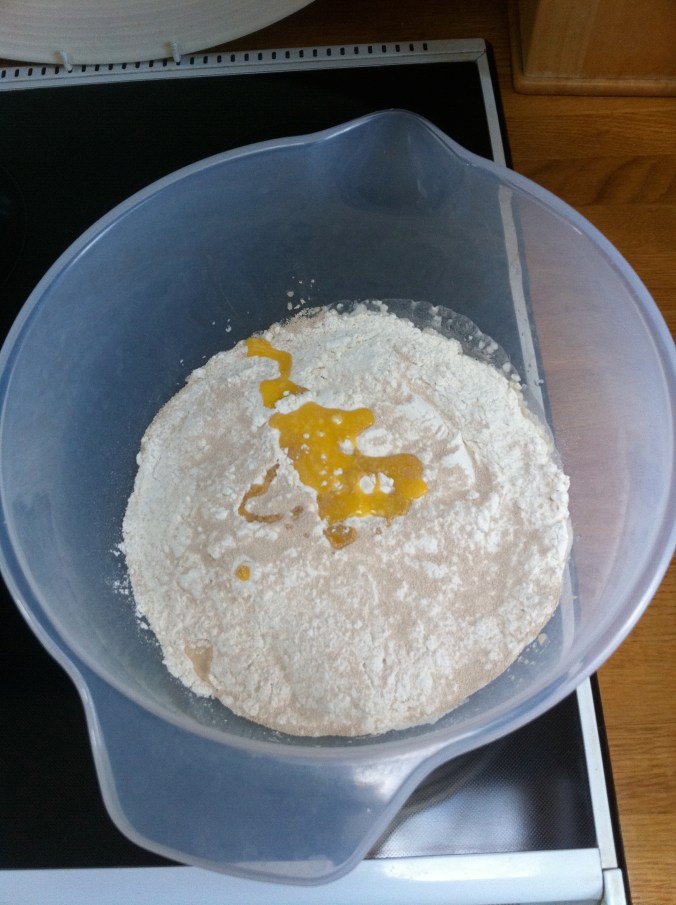 Once the dough was formed I kneaded it for about 5 minutes before putting it into an oiled bowl, covering with clingfilm and leaving it to rise for about an hour.