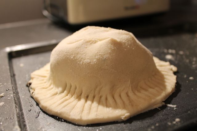 I made Ben’s mushroom wellington first of all. I panfried a washed, dried portobello mushroom with a garlic clove just to give it some flavour. I then laid the portobello mushroom on a square of ready-made puff pastry and this formed the base of the wellington. I topped it with a mixture of spinach, chopped onions and chopped mushrooms which was all sauteed together for about 20 minutes with garlic and lots of salt and pepper. Finally, I added a big spoonful of cream cheese to the top of the mushroom mixture and covered the whole thing with another square of puff pastry. It was very easy to make and I hoped that the addition of cream cheese would elevate it to something quite special. Ben loves mushrooms and he REALLY loves pastry, so he was pretty psyched.