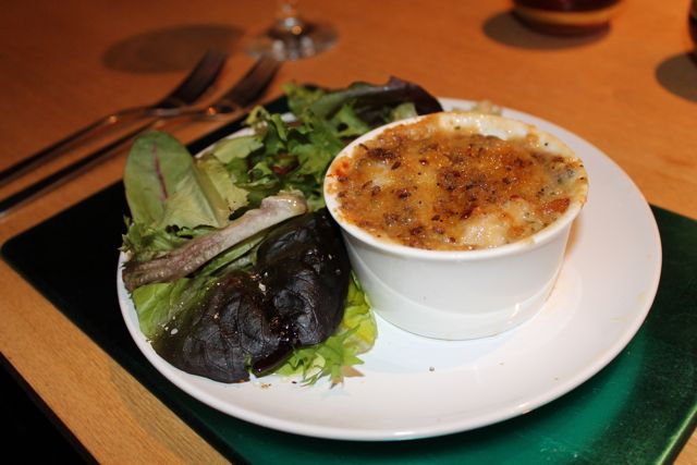 Next up were our starters. Scallops in a garlic butter gratin for me, prawn-free prawns in a garlic butter for Benj! I mixed together butter, lots of crushed garlic, parsley and chilli flakes.
