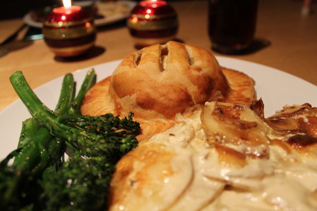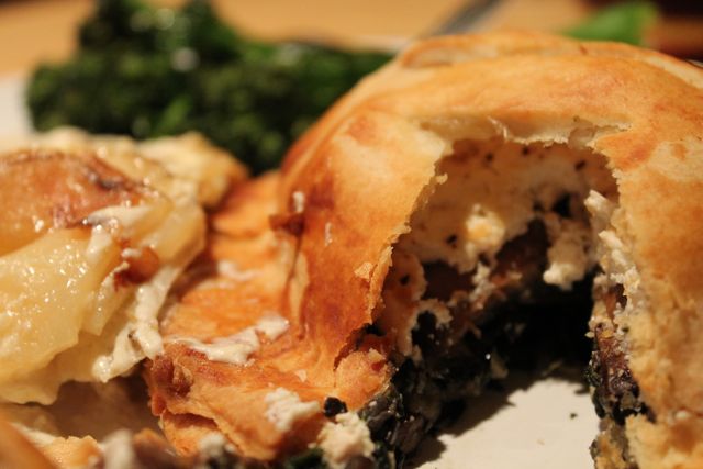 Then, the main event…mushroom wellington, dauphinoise potatoes and tenderstem broccoli for Benjamin.