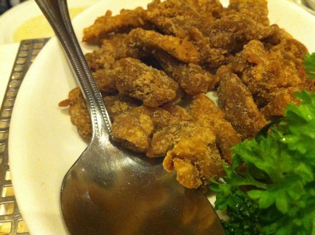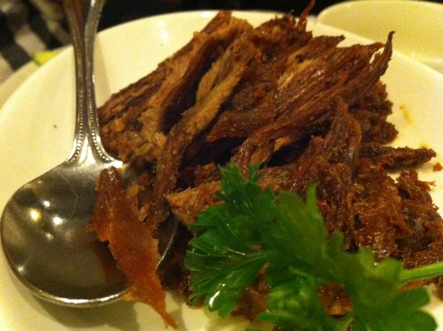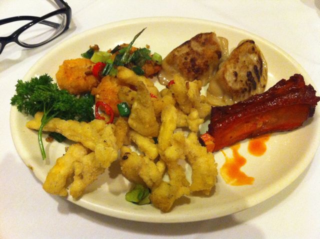 I ordered (clockwise, from top) Grilled Pork Dumplings, Chinese Style Spare Rib, Salt and Pepper Squid and Salt and Pepper Prawns. The chunk of green on the right is just a garnish, obviously I didn’t eat that.