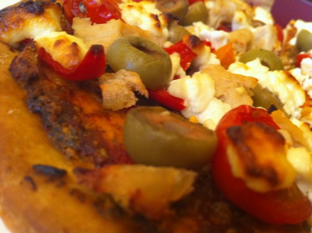 I also make the perennial SW fave ‘Pizza topped chicken’ quite often, with either actual chicken or Quorn fillets. This is a nice alternative, and it means I don’t have to use my HEXB on bread for the base.